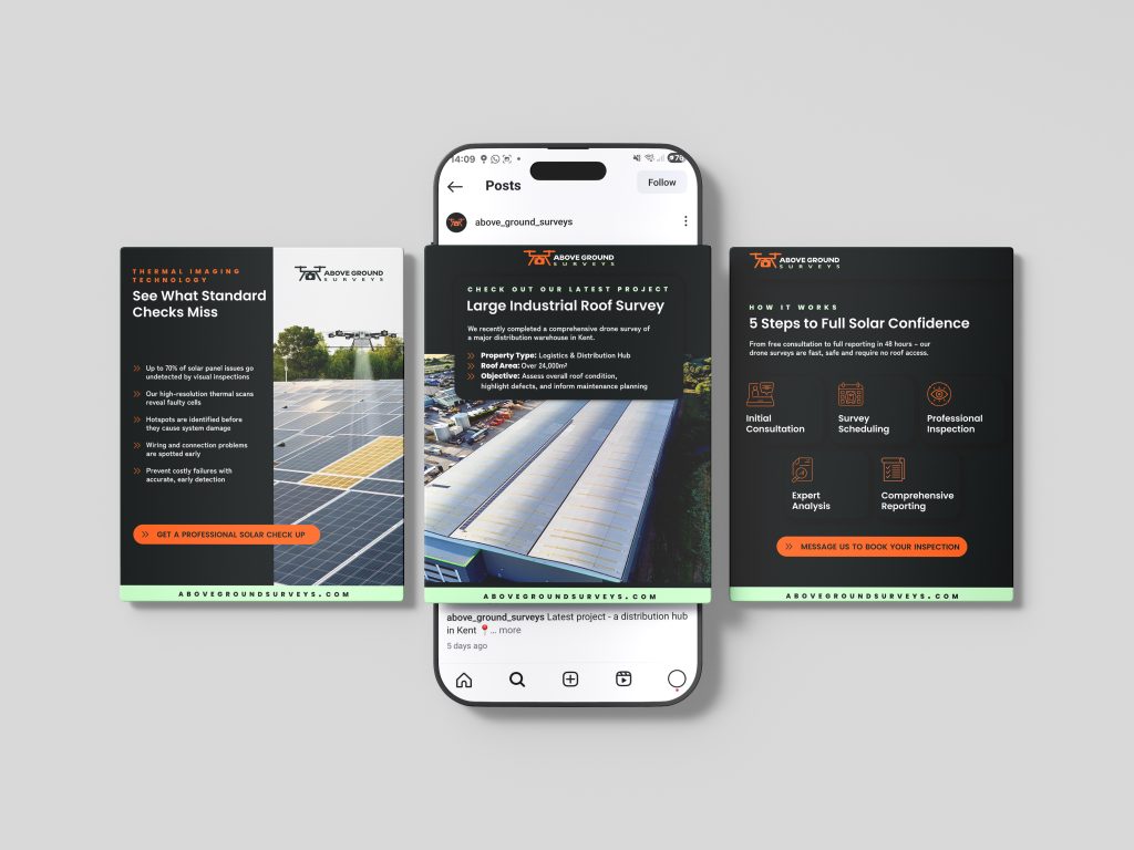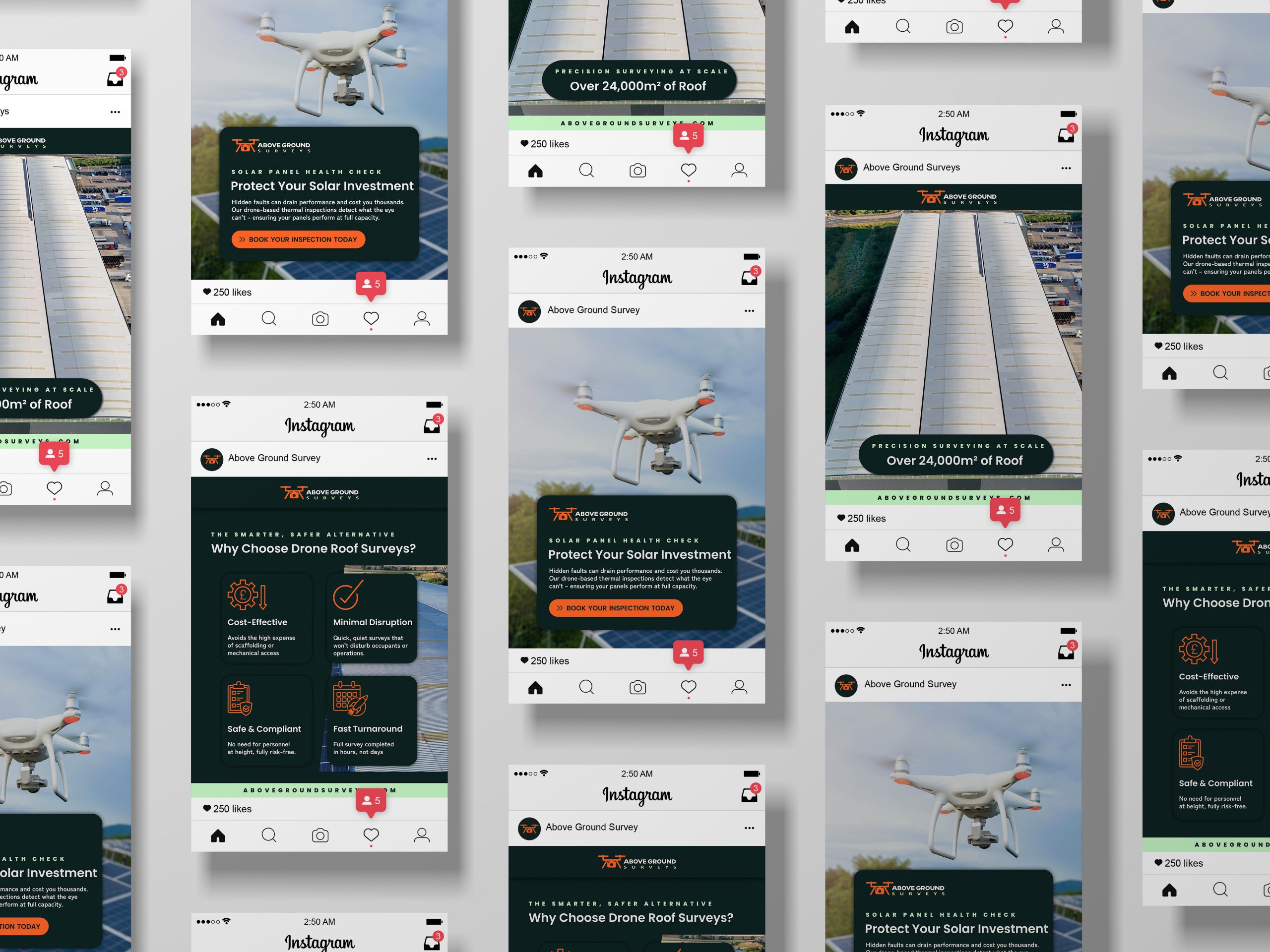 We developed branded social media assets to help Above Ground Surveys build a stronger, more consistent presence across platforms. Designed to communicate expertise and professionalism, the assets made it easier for the team to showcase projects, engage their audience, and reinforce trust with contractors and property professionals.