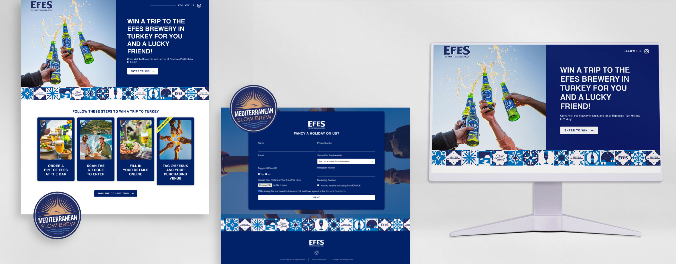We brought the Efes giveaway campaign to life with a streamlined, mobile-first landing page designed to convert. The layout was clean and focused, using bold visuals and a Mediterranean-inspired colour palette to reflect the warmth and vibrancy of the Efes brand. From UX to copy, everything was built around simplicity — making it easy to enter, easy to share, and enjoyable to use.
